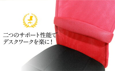 背のメッシュ弾力性と腰当てランバーサポートによるダブルケア。